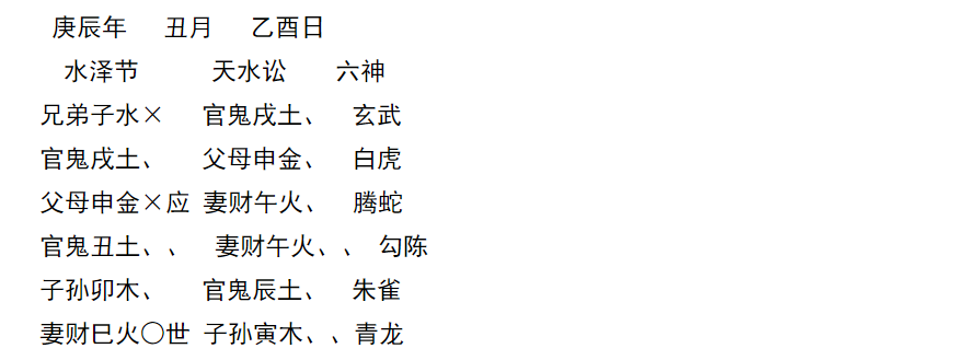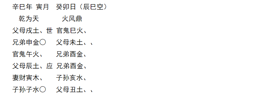 例二、癸酉月己巳日章先生测工作得《丰》之《谦》壬申日辞职另换工作。见本人所著《六爻实战卦例精选》第19页。