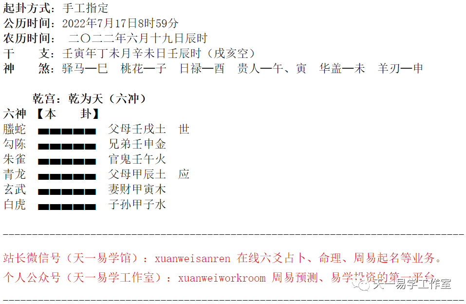按:这些最基本的知识,不耽误过多时间,网上很多详细的视频讲解,如果还没有掌握,就尽量用半天的时间搞清楚就行了,这里也建议排盘用我网站的六爻排盘:https://www.xw123.cc/ly/