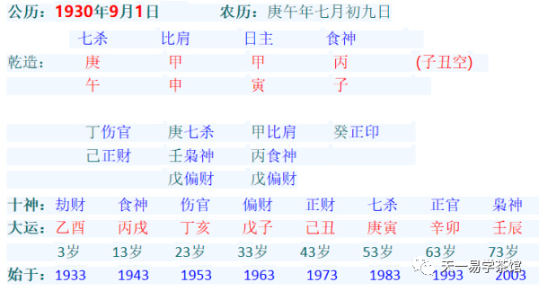 关于袁老的八字争议,网上基本上有两个版本:一是庚午 甲申 甲寅 丙子(1930年9月1日生)。另一个是庚午 甲申 庚申(1930年9月7日生),但根据袁老的一生成就,显然是前者准确,虽然时辰不一定准确,但是这个八字还是有很强的代表性的,值得研究: