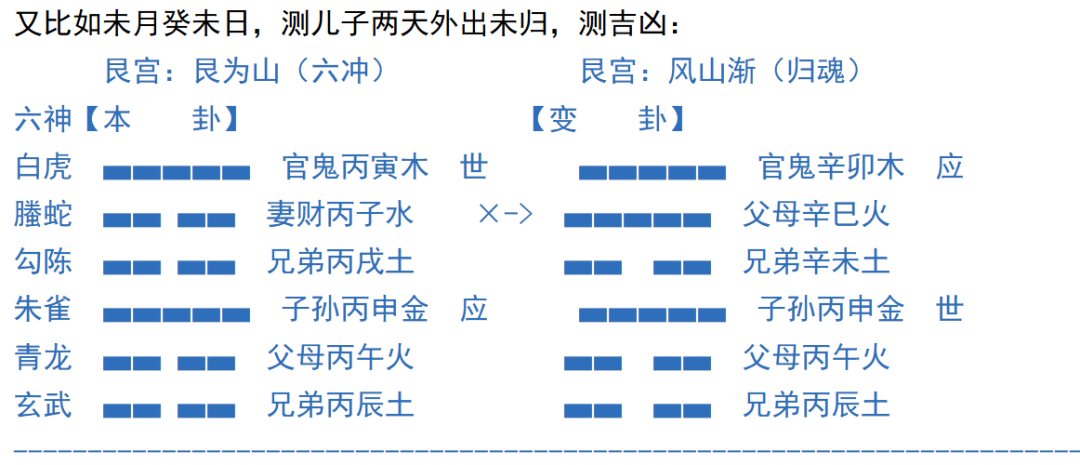 规律二:在反应一个事情发展轨迹的时候,卦象反倒比较专一,爻象则容易遍地开花,也就是占此应彼,多数发生在爻象上,当然也有发生在卦象上,只要选取好太极点,然后精准的读取卦象的含义就好,比如《增删》中一个案例,一个人占小厮病: