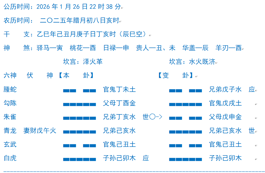 在知乎上一个网友求助:自从学了六爻以后,战战兢兢,因为自己测,发现世爻受克,很担心有什么灾,惶惶不可终日,我让他付费预测,他又不付费,我说我没有办法了,我没有义务免费给你指导,但是如实告诉他,你这种刚学卜筮,就用碎片化的知识给自己做指导,其实就是自寻烦恼而已,卜筮其实是很复杂的,且看下面这个案例,让你见识卜筮到底多神奇,多微妙,要知道,天机从来都很难窥探!