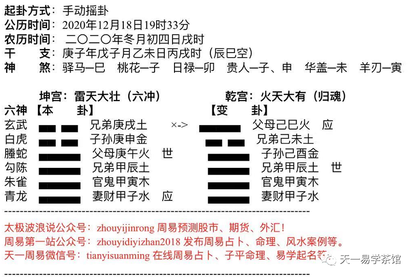重要声明欢迎点击上面蓝字“天一易学茶馆”关注本公众号,本平台重在分析古今占卜、命理、风水等案例,畅聊儒、道、佛,继承和发扬中国传统易学文化,古为今用,造福于民!爱好周易预测金融的读者,请扫码关注文末的“天一周易与K线”公众号。第一个卦,年前一个客户