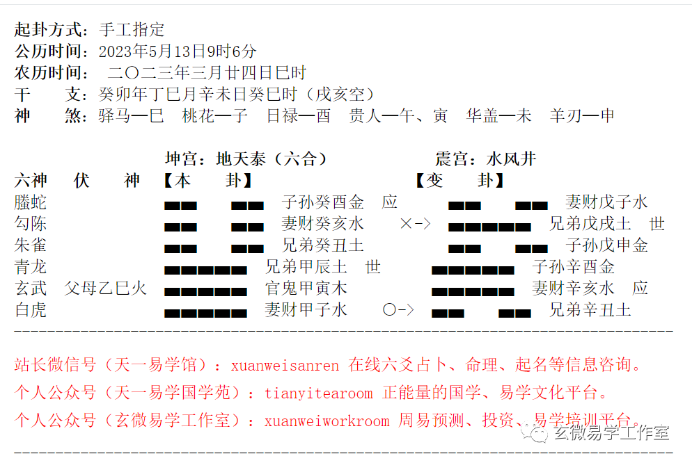 这个卦一出,我感觉好吓人,未土腾蛇墓寅,有乱七八糟的仓库,酉金临勾陈,又临马路,未酉就是两个杀手,让客户一家人健康不好,财运不好,因为财持世临白虎,非常明显。
