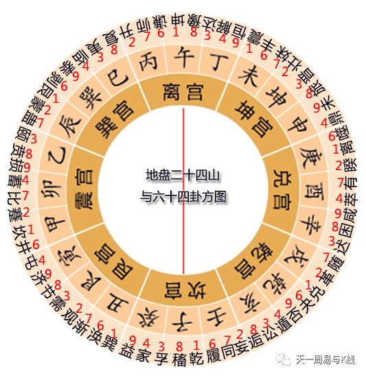 上图,是父系八卦爻变卦运图。《方图》六十四卦中的数字,是三元九运的运数。