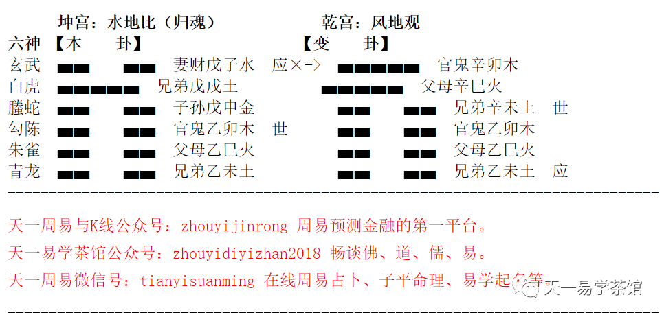 比如原文所载的案例一:未月甲戌日,测小孩被人绑架,吉凶如何?得水地比之风地观卦。